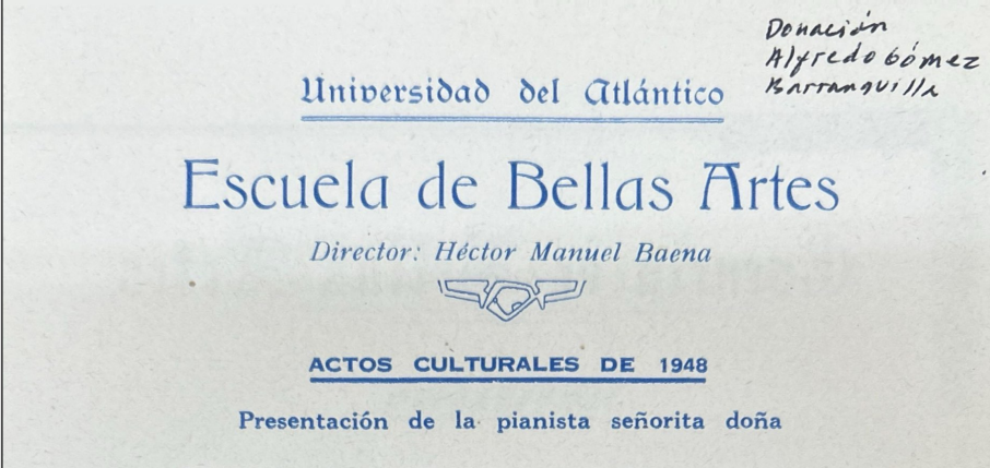 Actos Culturales de 1948. Presentación de la pianista señorita doña Martha Elena Emiliani